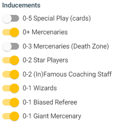 Coaches will have the following inducements options for league and FB Cup games: